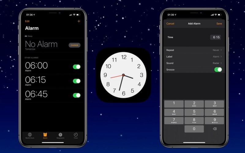 To start launch the Clock app and make sure you tap on Alarm on the bottom row. Set a time for the alarm. Tap to pick a sound that plays when the alarm sounds.